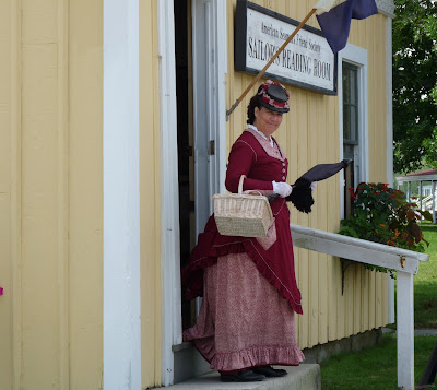 In addition to the historical buildings and activities there are special exhibits during the year. Currently there is an exhibit about sailors' tattoos and the tattoo artists and how the craft started. One of the most fun things at this exhibit was a special light that slowly "tattooed" an anchor on your arm as you watched. Computer generated with a buzzing sound in the background you watched as the anchor was inked onto this young lady's arm. Fun stuff!